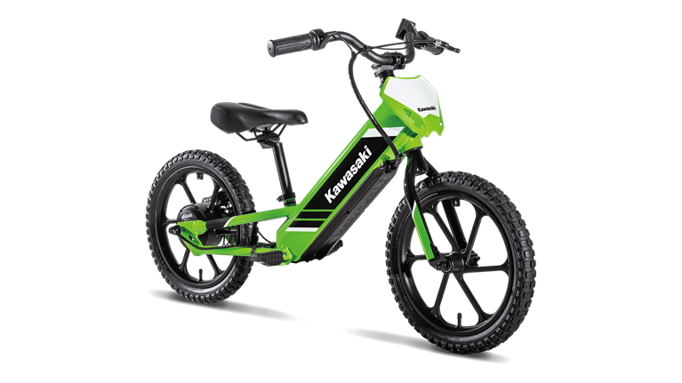 The Kawasaki Elektrode® 16 electric balance bike is an approachable bike for kids ages 3-8 and is the perfect first step in their journey on 2 wheels. Now the whole family can get in on the fun and help kick-start the process of getting little rippers on their first bike.